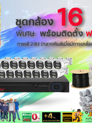 กล้องวงจรปิดจัดชุด แบบ IP ชุด 16 กล้อง (สี 24H)