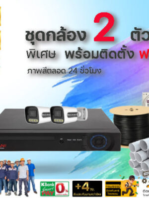 กล้องวงจรปิดจัดชุด แบบ IP ชุด 2 กล้อง (สี 24H)